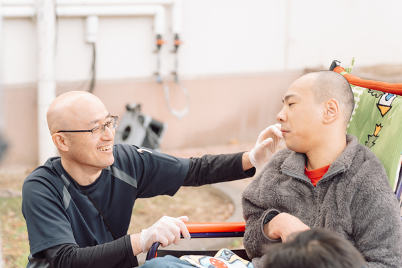 実は、福祉の世界に入る前は鉄鋼関係の仕事をしていました。たまたま知り合いから「やってみんか?」と誘いを受けたのがきっかけです。最初は老人保健施設で16〜17年、その後に特養(特別養護老人ホーム)でも経験を積みました。ひかり苑との出会いも、また知人からの声掛けだったんです。それまでずっと高齢者福祉に携わってきましたが、「そういえば障害福祉の分野は経験したことがないな」と気づきまして。高齢者介護で培った技術や知識が、障害をお持ちの方の介助にも活かせるんじゃないか。そう思って、9年前にひかり苑への入職を決めました。