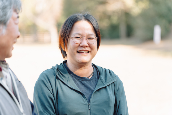 CHAPTER.03常に元気で、笑顔でいることです。利用者様の前では私自身が楽しんで、明るい雰囲気を作れるように心がけています。あとは、ご家族との関わりですね。信頼して預けていただけるよう、丁寧なコミュニケーションを大切にしていきたいと思っています。この仕事を続けていく中で、最近は「一人ひとりの方をより深く見つめたい」という思いが強くなってきました。経験を重ねるごとに、粘り強く向き合えるようになってきたのかな、と自分自身の成長も感じています。