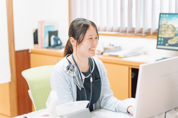 CHAPTER.01高校生の時から「医療事務をしてみたい」という思いがずっと心の中にあったんです。卒業後は一度別の接客業に就いたのですが、やっぱり諦めきれなくて。そんな時に、たまたま知り合いを通じてひかり苑でのお話をいただいたんです。ずっと「やってみたい」と思っていた職種でしたし、詳しくお伺いするうちに「あ、いいな」と直感的に感じるものがあって、医療事務の道へ進むことに決めました。